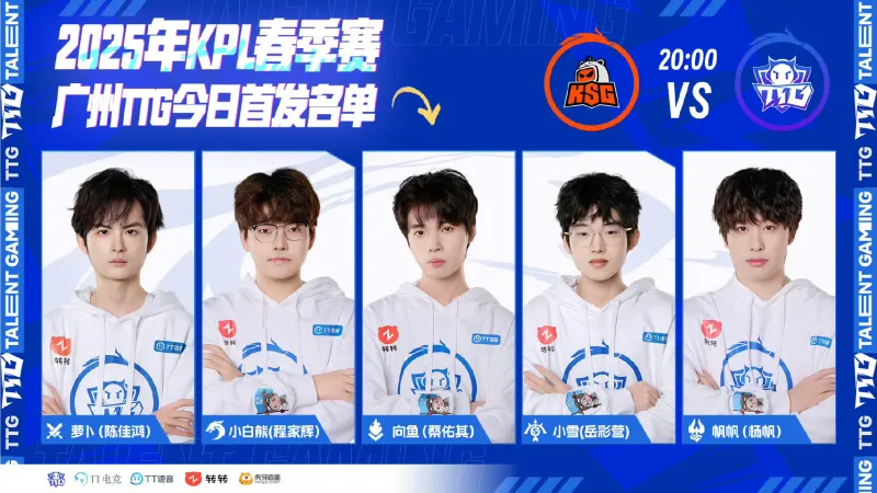 广州TTG对阵苏州KSG首发名单:小雪首发登场