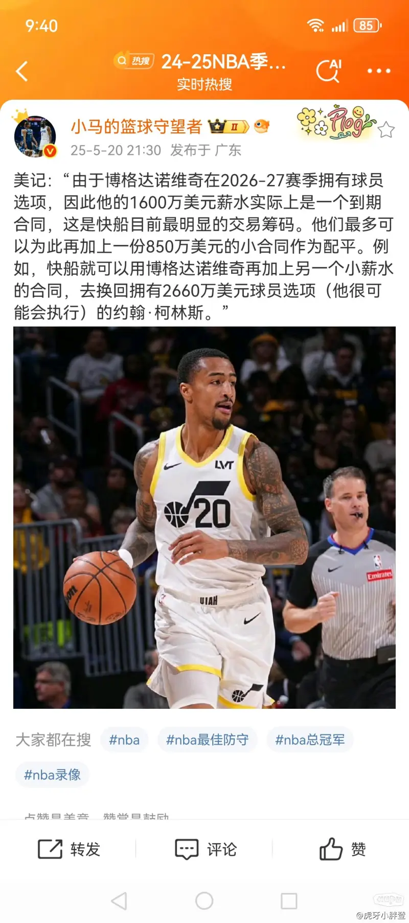 美记:“由于博格达诺维奇在2026-27赛季拥有球员选项,因此他的1600万美元薪水实际上是一个到期合同,这是快船目前最明显的交易筹码。他们最多可以为此再加上一份850万美元的小合同作为配平。