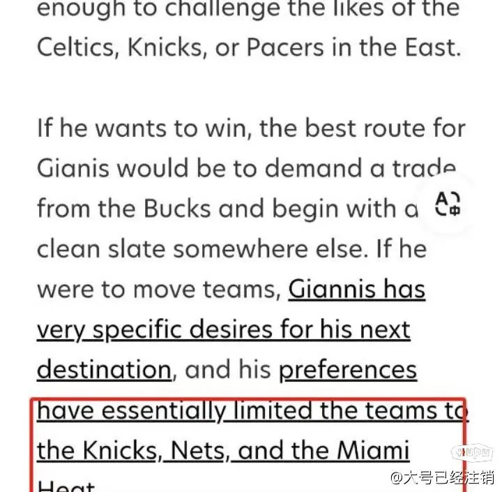 字母哥向雄鹿申请交易!指定下家是咱网或是热火!